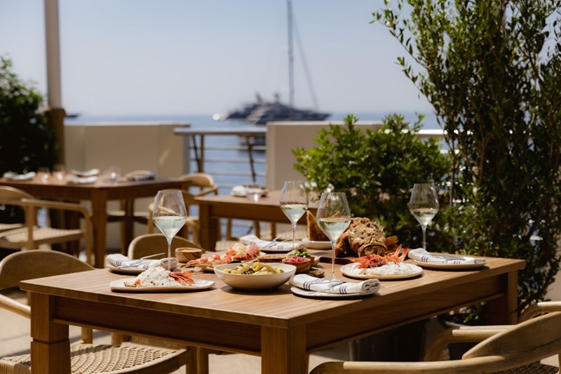 No espaço a arte de viver mediterrânea é saboreada entre o mar e o céu, com frutos do mar e peixes como protagonistas, oferecidos em diversas preparações. Ao cair da noite, a magia do lugar se intensifica com o brilho do crepúsculo.