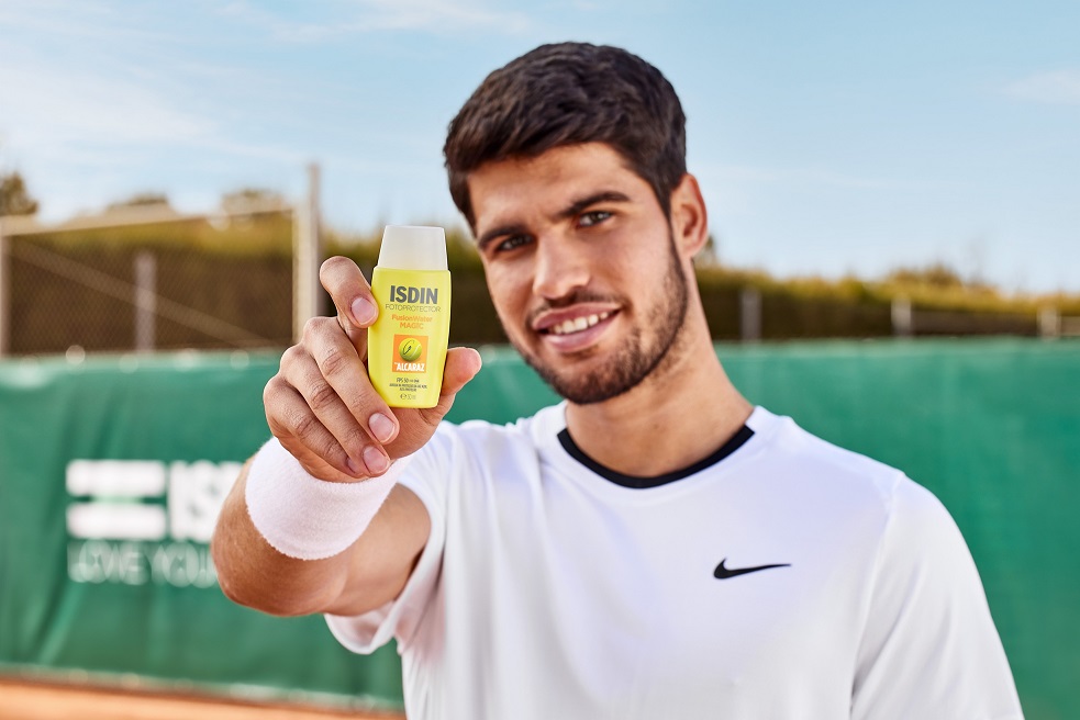 A ISDIN traz ao Brasil Fusion Water Magic Alcaraz, protetor solar facial que tem o aval de Carlos Alcaraz, grande estrela do tênis mundial. Com textura ultraleve, absorção imediata, efeito refrescante, resistente ao suor, FPS 50, não deixa resíduos, não arde os olhos, controla a oleosidade e promove proteção contra a degradação de colágeno, sendo ideal para atividades físicas ao ar livre com exposição prolongada ao sol.