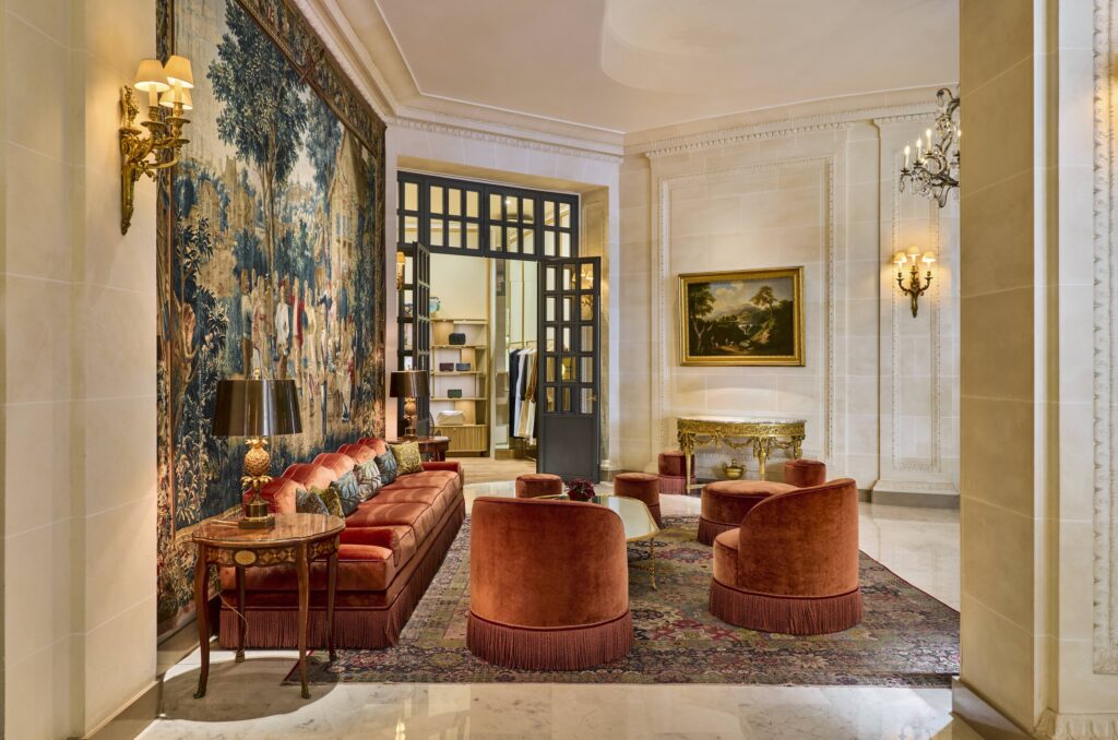 O Le Bristol é, atualmente, o único ponto de venda na Europa onde essas peças estão disponíveis, o que cria uma camada adicional de exclusividade. Há ainda uma seleção de antiguidades francesas escolhidas pessoalmente pelo estilista em suas viagens pelo país, que insere uma dimensão autoral e quase doméstica à experiência.