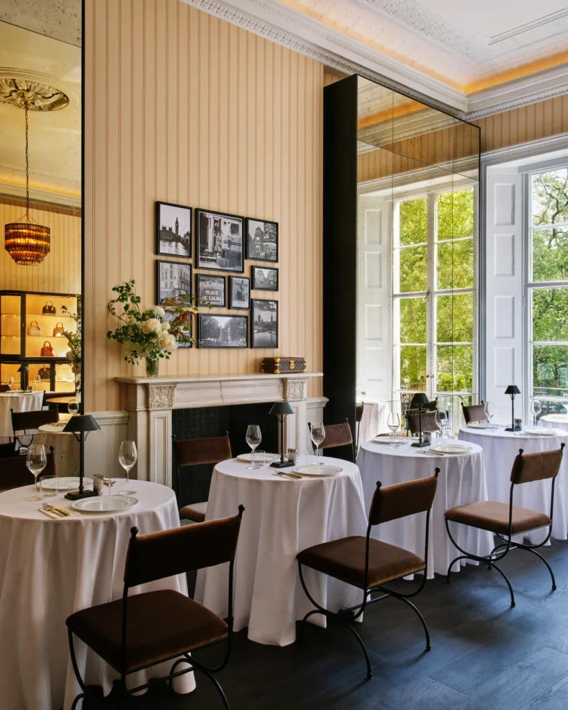No primeiro andar, o Café Alma assume o papel de extensão sensorial da experiência. Com vista para Berkeley Square, o ambiente aposta em um menu que dialoga com a sazonalidade britânica, incluindo chá da tarde, formato que, mais do que gastronômico, carrega um código cultural local.