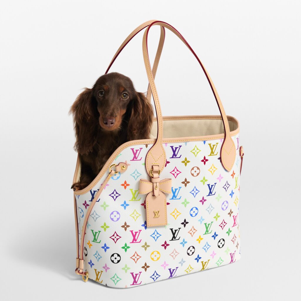 No centro dessa proposta está a Neverwoof, releitura direta da icônica Louis Vuitton Neverfull, lançada em 2007 e consolidada como um dos maiores símbolos de versatilidade da Maison. Agora, o modelo ganha uma nova função, adaptado para o transporte de cães de pequeno porte, sem abrir mão dos códigos estéticos e da engenharia de produto que definem a marca.