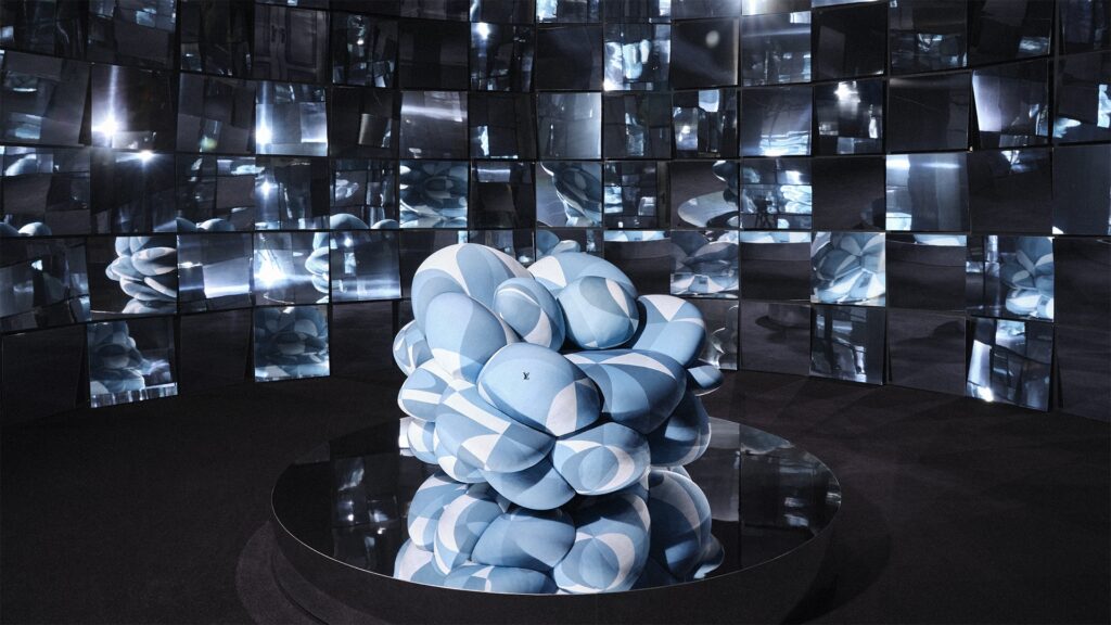 Fora do circuito interno, o pátio do palácio abriga uma instalação de grande escala desenvolvida em parceria com a Accademia di Belle Arti di Brera, aproximando o projeto do campo educacional e ampliando sua dimensão cultural. Já na entrada, uma livraria temporária reúne publicações da maison, reforçando a estratégia editorial da Louis Vuitton como extensão de seu universo criativo.