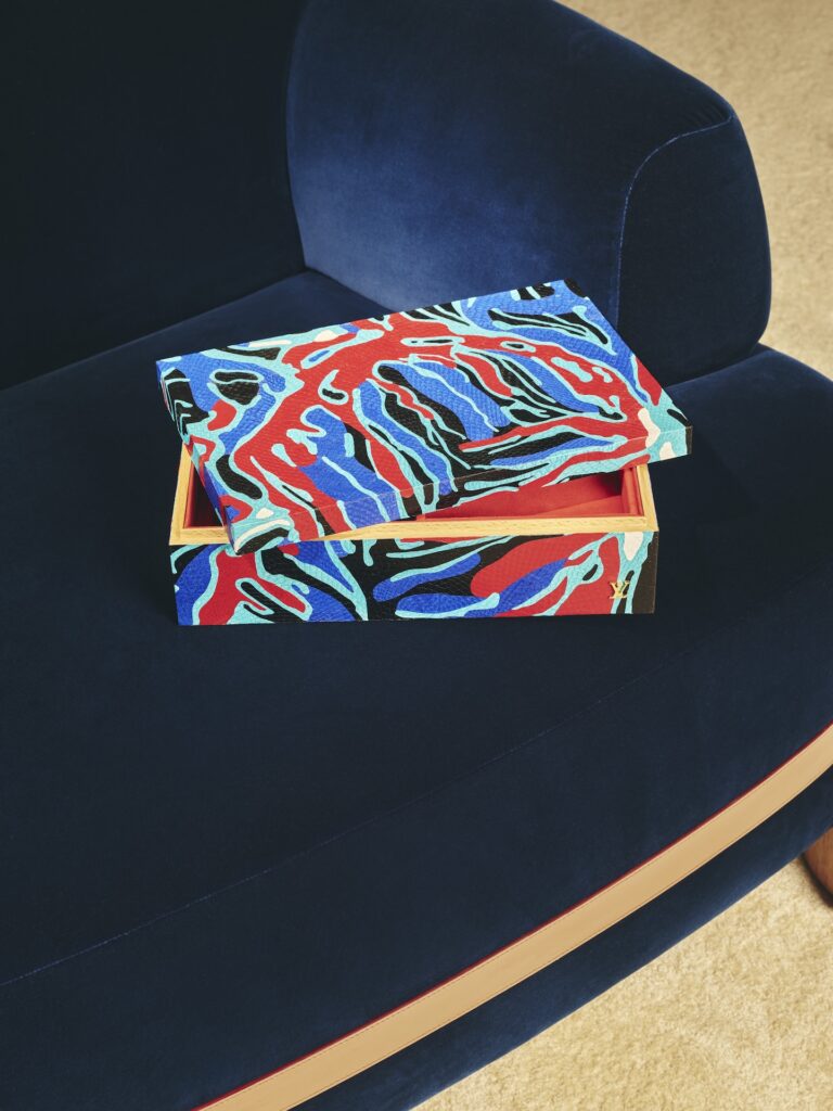 A maison apresenta a coleção Objets Nomades, iniciativa que, há anos, convida designers e artistas a reinterpretar o conceito de mobiliário nômade sob a ótica do savoir-faire da marca. Em 2026, a proposta ganha uma camada adicional de densidade histórica ao prestar homenagem a Pierre Legrain, figura-chave do movimento Art Déco, cuja obra inspira não apenas peças inéditas, mas também a ambientação dos espaços.