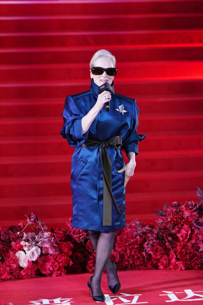 Esta foi a segunda vez que a atriz incluiu design brasileiro durante a turnê de divulgação do longa. Em Xangai, no último dia 10, Streep apareceu com um modelo da Alexandre Birman. O sapato, em cetim preto e com salto médio, reforça uma elegância calculada, alinhada à imagem construída pela atriz ao longo da carreira. O design, pensado inicialmente para o mercado norte-americano, traduz uma leitura clássica com acabamento refinado, estratégia recorrente da marca para se posicionar em mercados internacionais exigentes.