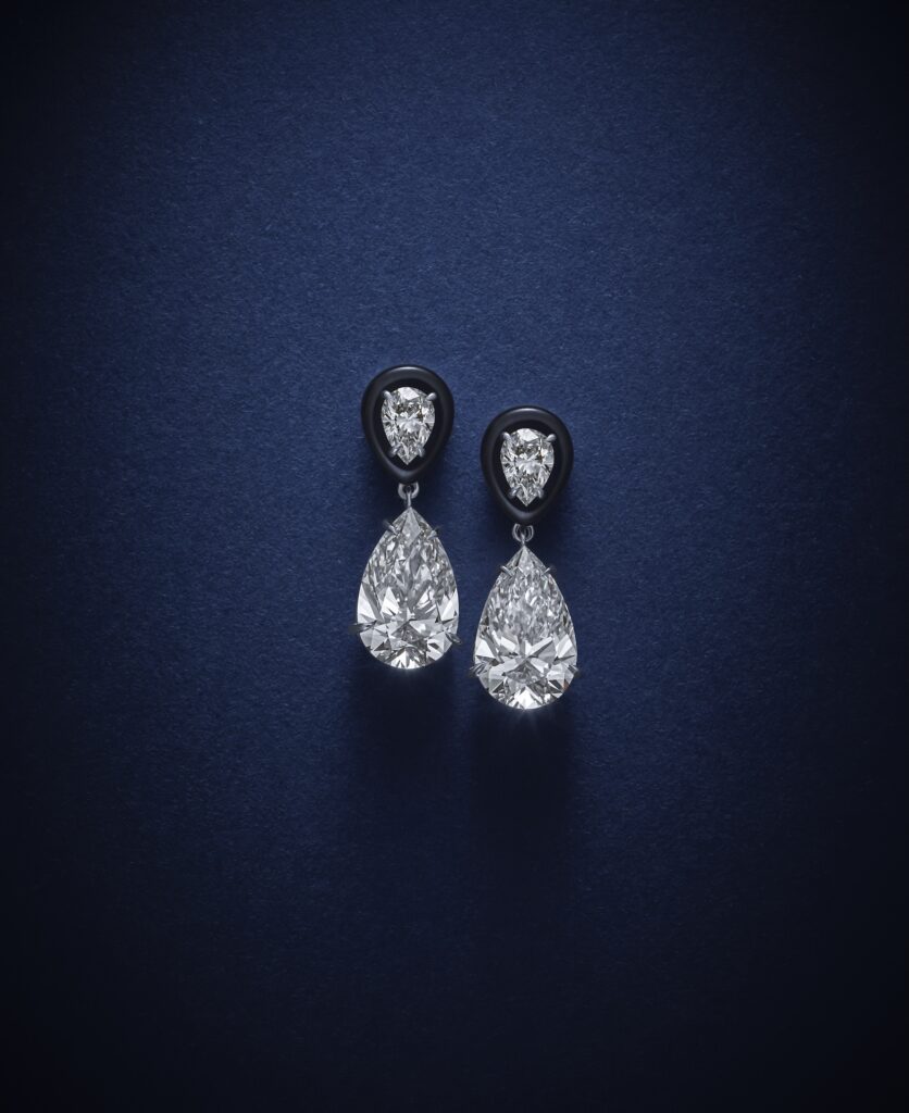 Em Londres, durante o evento A Night With Runway, realizado na National Gallery, a atriz surgiu com joias da Sauer. A seleção, assinada pela stylist Micaela Erlanger, trouxe brincos em diamantes e ônix lapidados em ouro branco 18k, em uma composição que privilegia contraste e precisão estética.