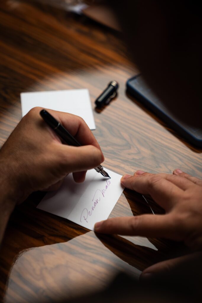 Como marca, buscamos ir além do discurso. Promovemos workshops de caligrafia, incentivamos práticas de escrita em nossas boutiques e mantemos, globalmente, um programa de envio de cartões postais, em que convidamos as pessoas a escrever mensagens à mão e nós nos encarregamos de entregá-las. São iniciativas que traduzem, na prática, o nosso compromisso em manter viva a cultura da escrita.