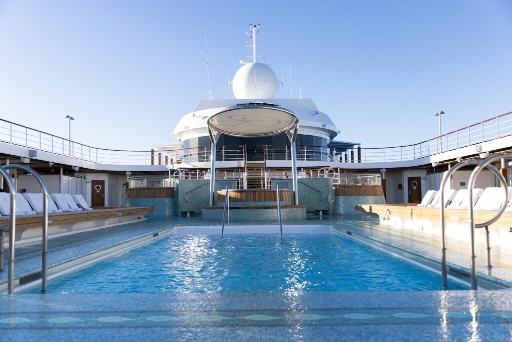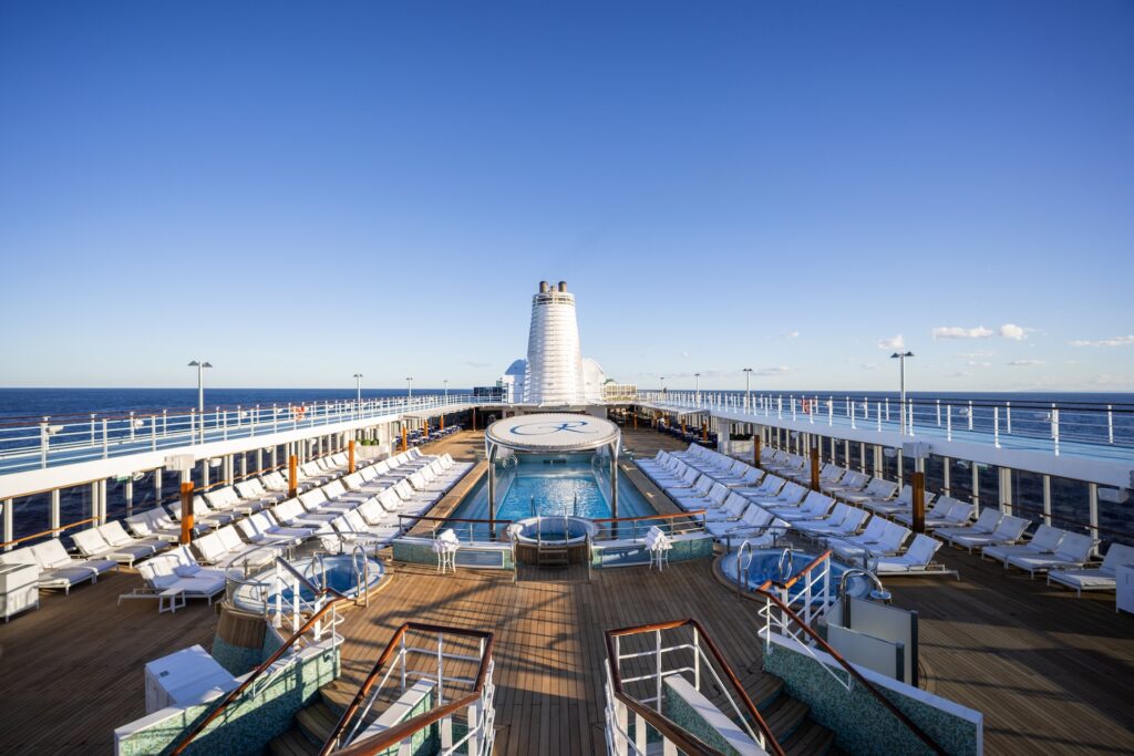 Além do trajeto, o produto chama atenção. A Regent estrutura a experiência sob o conceito de “luxo all inclusive” em sua forma mais ampliada. Estão incluídos 326 passeios em terra, uma oferta incomum mesmo dentro do segmento premium, além de uma série de serviços que eliminam fricções da jornada, como traslado de bagagem porta a porta, lavanderia ilimitada, assistência médica a bordo e uma noite pré-embarque em hotel de luxo em Miami, acompanhada de jantar de gala.