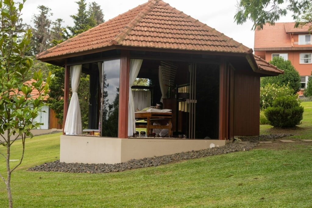 Batizado de Sonorium, o ambiente é o primeiro das Américas baseado na tecnologia desenvolvida pela Svaram, referência internacional em práticas de cura sonora aplicadas à saúde integrativa. Instalado em um quiosque imerso na paisagem natural da propriedade, o espaço foi concebido para sessões individuais que combinam escuta, vibração e percepção corporal do som.